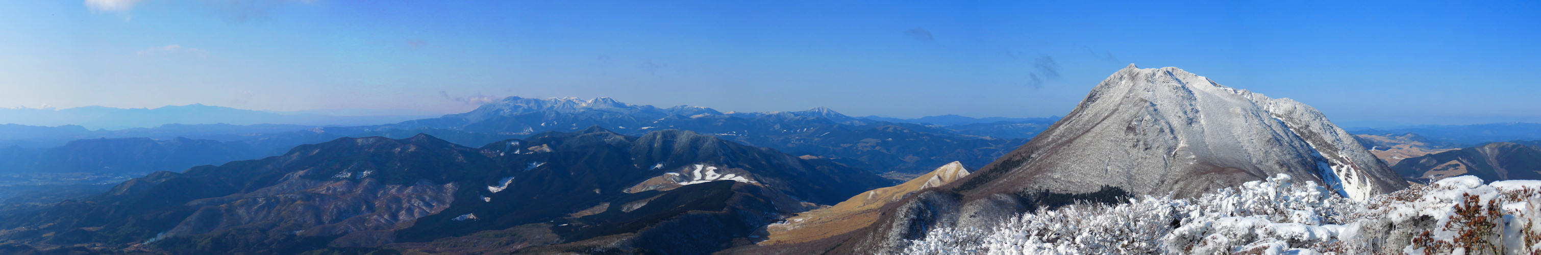 2015年2月3日 遠くに九州の屋根1700m級のくじゅう連山 右手前に近くの由布岳