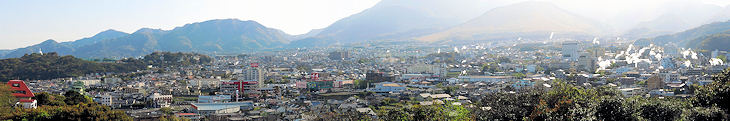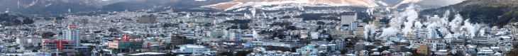 湯けむり展望台からは町のいたるところから湯けむりがたちのぼる眺められます、