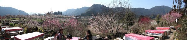 旧大山町は梅・栗植えてハワイへ行こうと頑張った大分の一村一品運動の元祖です。 町のほぼ中央の台地には梅の木がたくさん植えられており、毎年2月中旬から3月中旬の 開花時期には「おおやま梅まつり」が開催されます。 木の花ガルテンは大山産にこだわった農産物販売とレストランです。