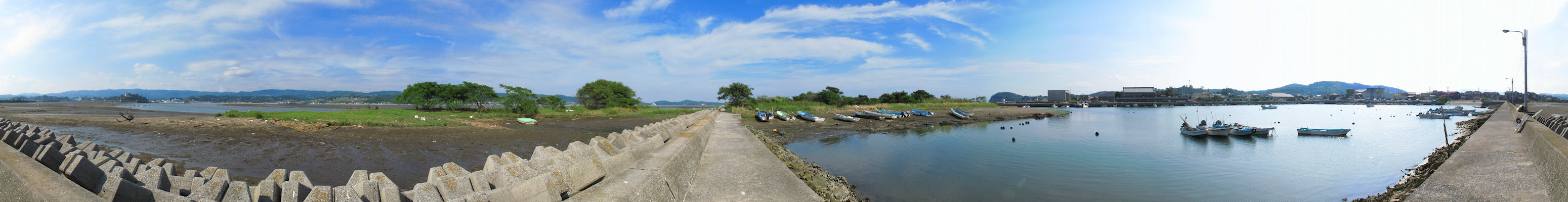 2011年9月28日撮影 納屋港の防波堤の先に土砂が溜まって島のようになっています
