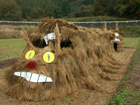稲わらで作った猫バス