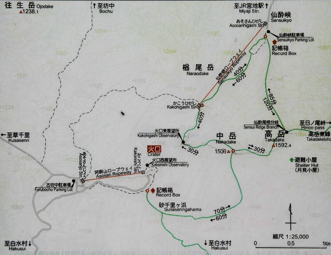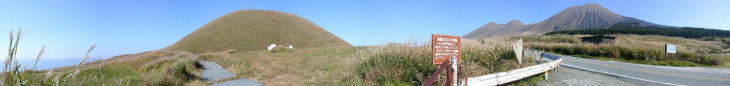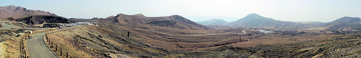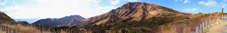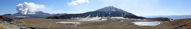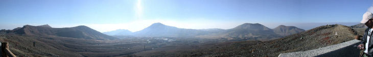 山上ロープウェー駅や烏帽子岳や草千里の方向を見る