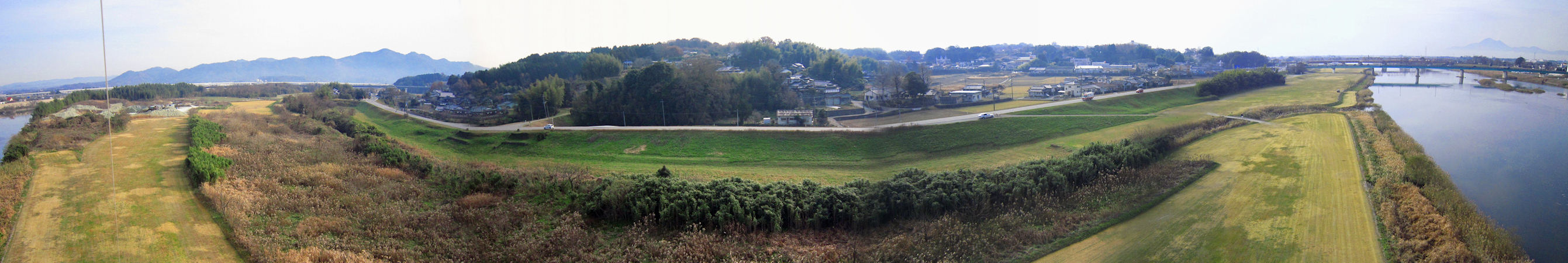 菊池川河川敷から凧を揚げて空撮したパノラマ 3