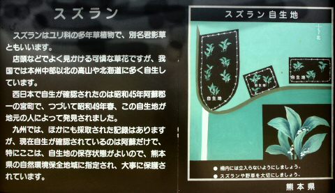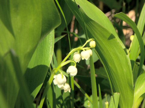 柵で囲まれた中 他の草花に埋もれるようにところどころスズランが咲いていました