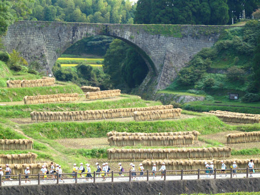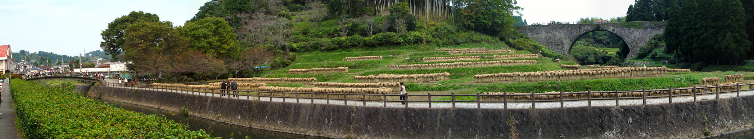 2010年10月14日 水の便が悪く、水不足に苦しんでいた白糸台地の農民を救うため1854年肥後の石工たちの 高い技術を用いて作った日本最大級の石造りアーチ水道橋です。 橋の上部にはサイフォンの原理を応用した3本の石の通水管が敷設され台地へ水を送って田畑を潤しています。