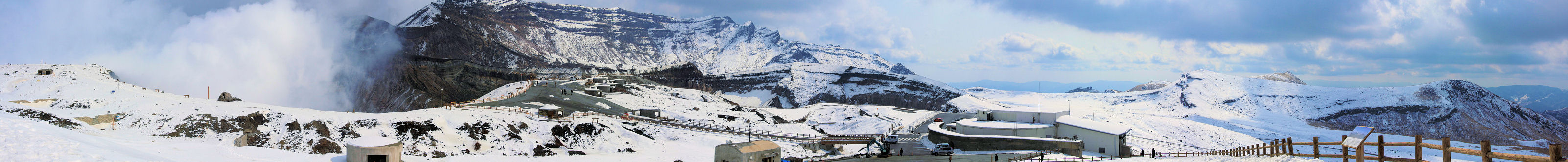 2008年2月19日 噴火口です、右端の建物はロープウェイ山上駅 風もあり過去最高の寒さを体験しました