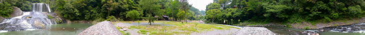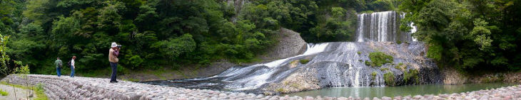 竜門の滝は中間に滝壷がある二段落としの滝で、全体としては幅40m、落差20mの滝です。