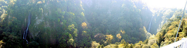 吊橋から震動の滝 女滝(左)と男滝(右)