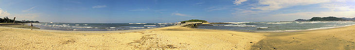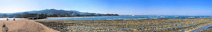 橋でつながっていますが潮が引いている時は橋を渡らずに浜を歩いて渡ることもできます。