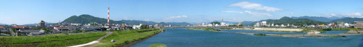 河口は北(きた)川、祝子(ほうり)川と合流して延岡平野の複合三角州をつくり、延岡市では、本流と