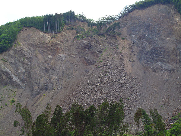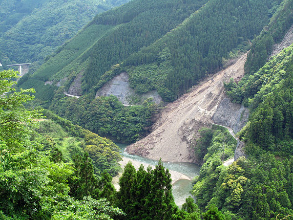 対岸の迂回路の山道を通って椎葉に向かいました。 ↓崩落箇所を迂回路から撮影