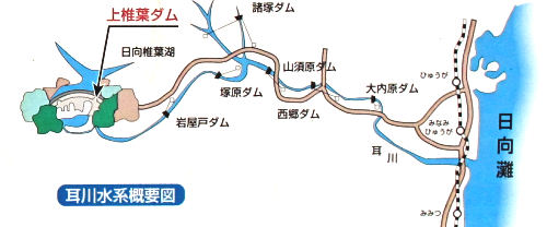耳川にはたくさんのダムがあり、下の写真のような水力発電所が7箇所もあります。
