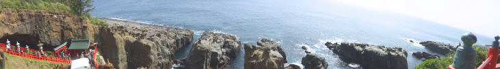 鵜戸神宮 自然の岩窟の中に設けられた神社。神社としては非常に珍しく、鳥居から社殿に至るまでの