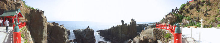 日南海岸 は鬼の洗濯岩など変化に富んだ海岸線が続く海岸で景勝地に青島、堀切峠、鵜戸神宮、都井岬、