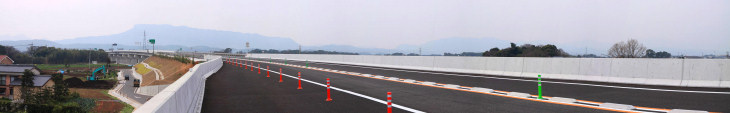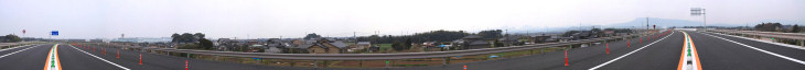 新しく開通する「中津日田道路3.6km」のパノラマ写真を撮影いたしました。