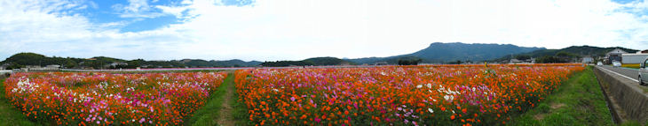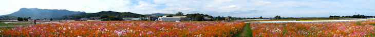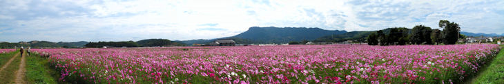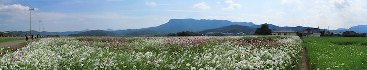 旧三光村コスモス祭りと八面山からのパノラマ写真