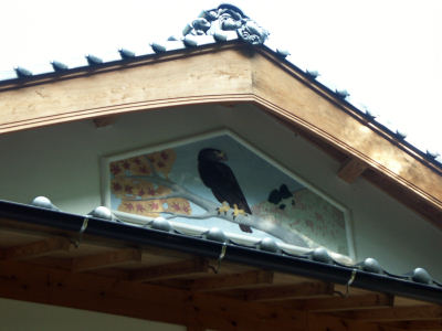 吉峰さんにお伺いそたところ最近屋根を葺き替えたそうでそのとき左官さんが鷲岩と鷲を鏝絵で作ったそうです