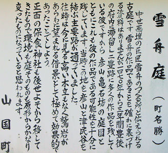 吉峰さん宅の庭ですが 山水画の大家雪舟は1476年〜1486年頃の10年間この吉峰邸に滞在しており