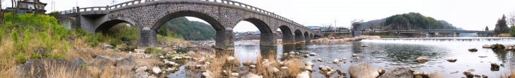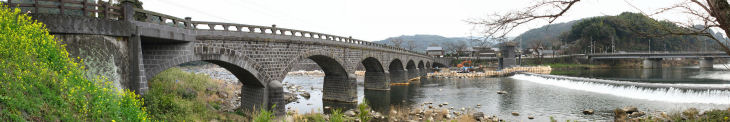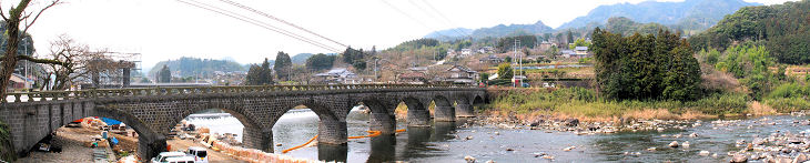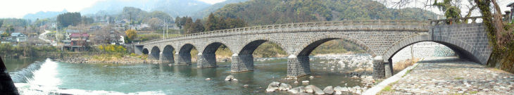 荒瀬井路取水口のすぐ下流にある国内唯一の8連アーチの美しい石橋です。 別名オランダ橋と呼ばれる優雅な石橋です、長さは116m幅4.1m 大正時代に作られました。