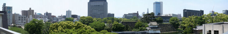 大分市内にも多くの高層ビルが目立ってきました、ビルの屋上などから市街をパノラマ写真で