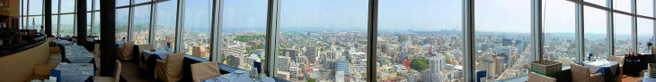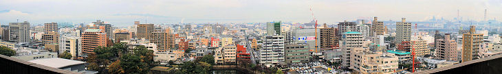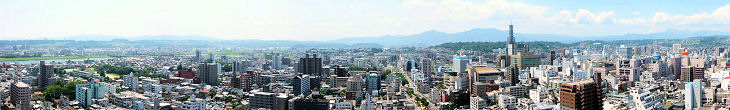 大分市内のビルの窓や屋上から大分市街をパノラマ写真で
