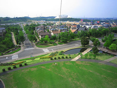パークプレイスのセントラルパークから凧を揚げて空撮した写真(2012年6月1日撮影)