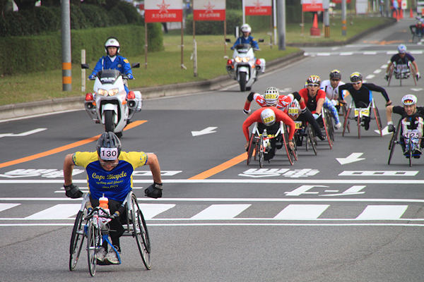 車いすのトップクラスのランナーは42.195kmを1時間20分余りで走ります。