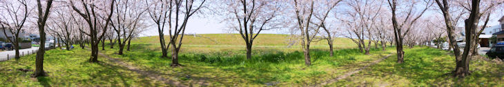 大分川河川敷から凧を揚げて撮影した写真複数枚を合成しパノラマにしました 写真4