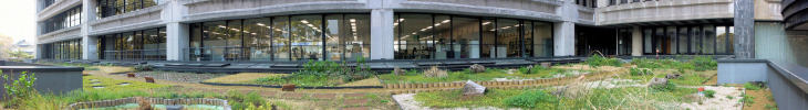 大分市役所増設部屋上では屋上の緑化実験をしています。