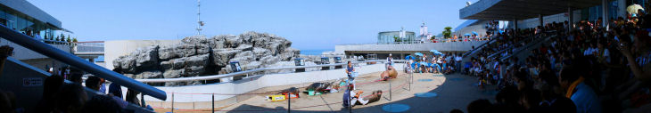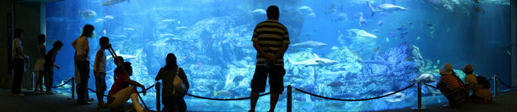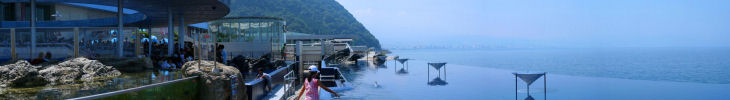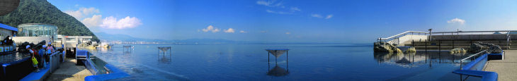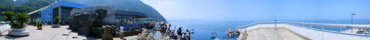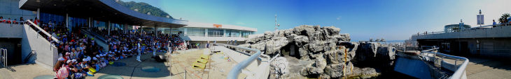 サルで有名な高崎山の下にある水族館「大分マリーンパレス水族館」でのパノラマ写真です。