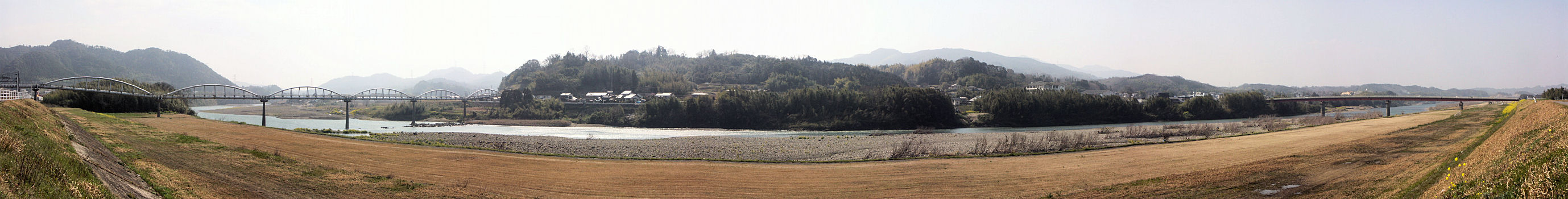 昭和井路付近の大野川と大南大橋(画面右)