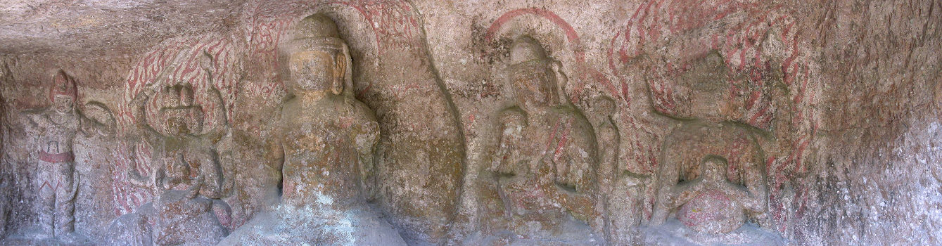 平安時代の作で 5体の磨崖仏が彫り出されています。左より深沙大将像(しんじゃたいしょうぞう)、