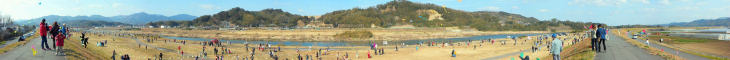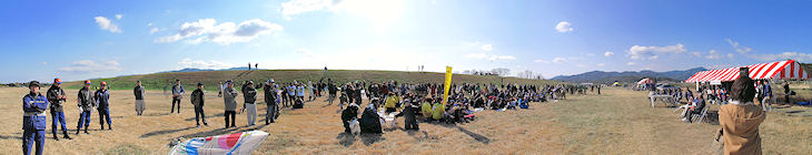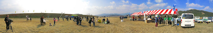 初めて参加した25回大会はあいにくの曇り空で完全に無風という悪条件ながら 参加者は河川敷を