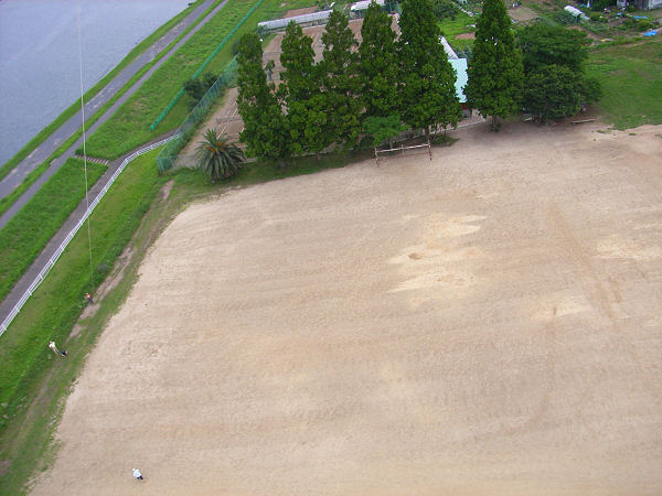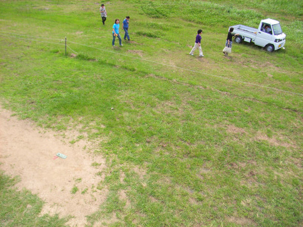 鶴崎文化研究会の方々と、これから凧を揚げます 撮影2009年7月7日
