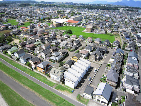 鶴崎大南線に沿って、新興住宅団地とロードサイド店舗が連なる郊外型の市街地が形成されました。