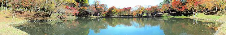 用作公園は岡藩主が家老に与えた別荘地で500本を越す紅葉が絵のように美しい公園です。