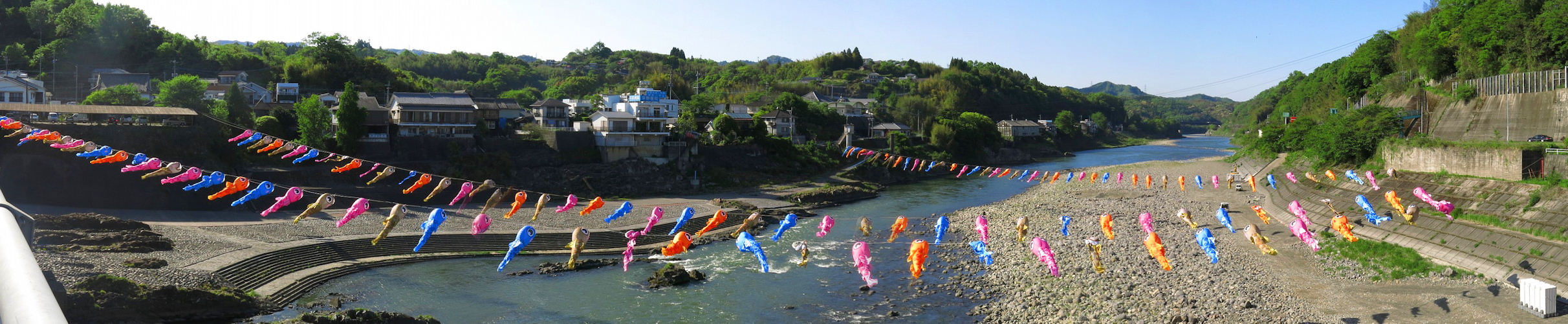 犬飼橋下流でどんこが空を泳ぐ風景1