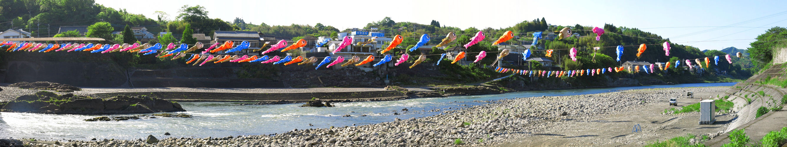 犬飼橋下流でどんこが空を泳ぐ風景2
