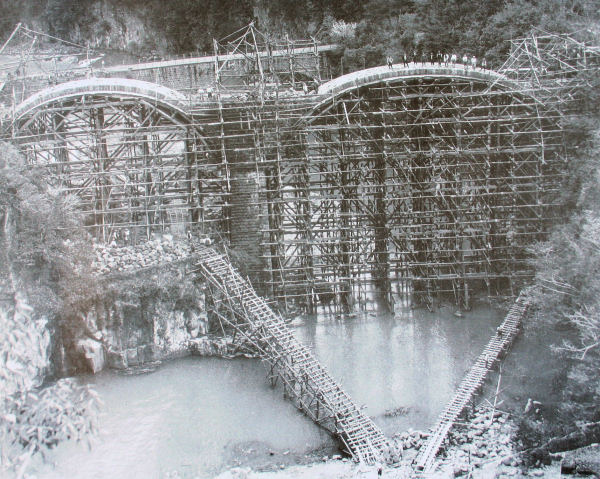 昭和8年撮影した轟橋工事中写真(大分市高山総合工業発行の「里の石槁たち」より)