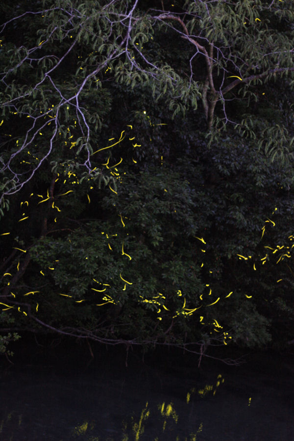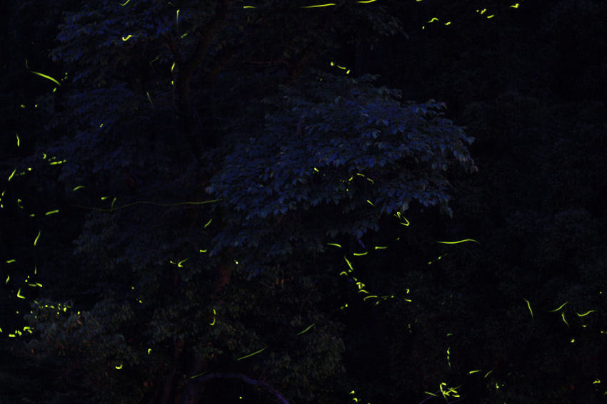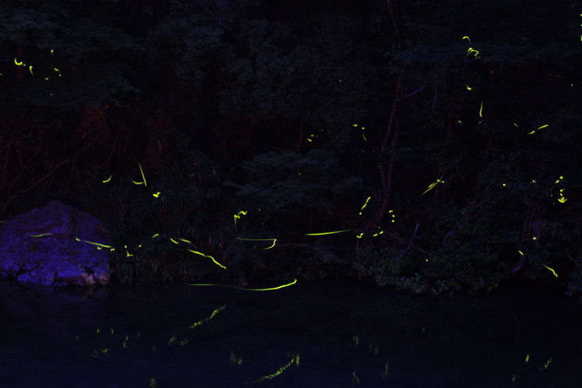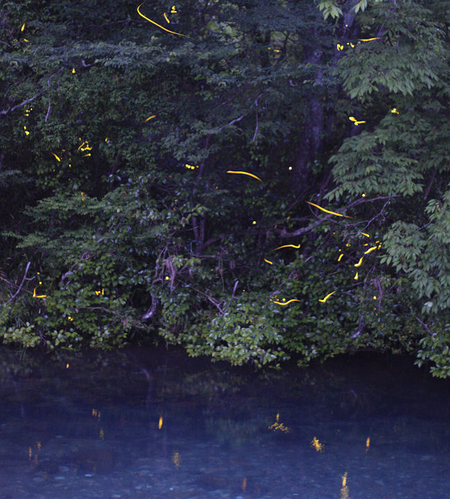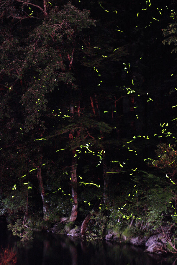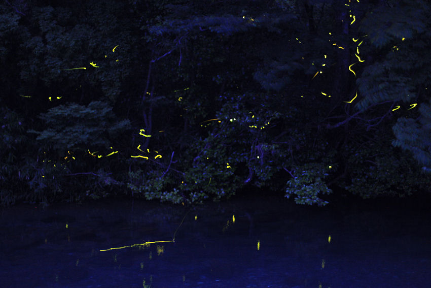 最初水面近くであまり動かなかった蛍も時間が経つにつれだんだん上の方を飛ぶようになります。