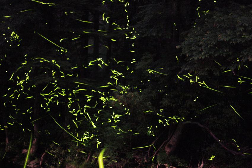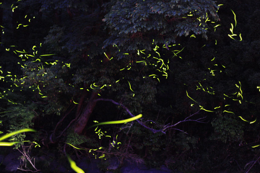 午後8時20分頃〜30分蛍の乱舞は最高潮 高く飛び上がる蛍は100m以上の高さまで飛んでいきます