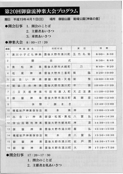 お友達のお誘いでこの場所で20回目となる 御嶽流神楽大会を見に来ました
