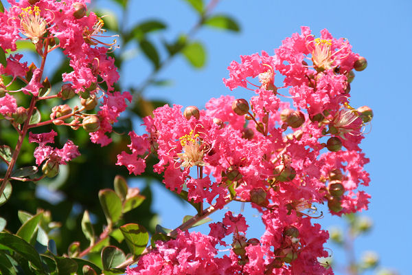 この時期百日紅の濃いピンクが青空に美しい