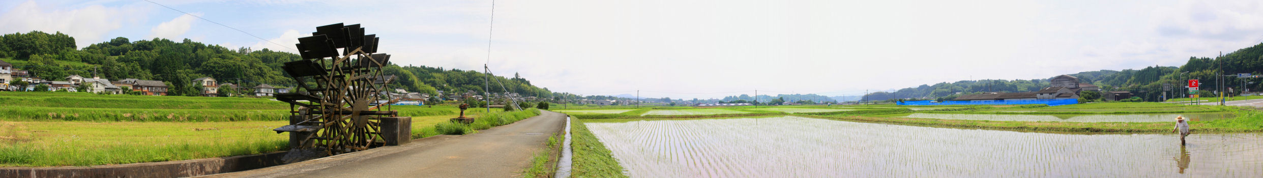 緒方の水車と水田風景