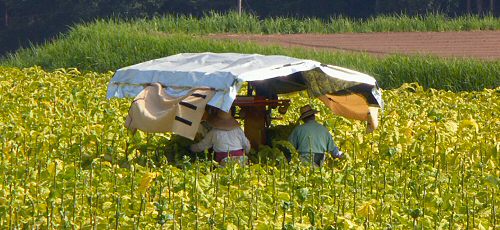 収穫時期を迎えたたばこ畑