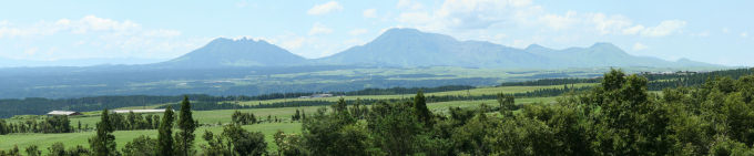鏡池とは宮ノ原の傍にある池の名である。池の中に古い鏡があったので名づけられた。 黒川には温泉があって地獄とも言われている。 三日、その地を発して久住原をよぎる。ここは肥後の境内で平原が数十里、 極めてくうかつ(人気のないさみしい谷)である。 西南に当たって阿蘇山を見る。その傍に猫嶽という山があって、その高さはほとんど阿蘇に匹敵する。 阿蘇は山容明媚だったと記憶するが、その頂より煙を生ずることが多い。猫嶽は山容猛悪である。 東南に九重山・大船山が並びそびえている。また竹田の城外に祖母山があって、三山とも極めて高く 阿蘇と高さを争っている。しかし阿蘇の名は海外にも聞こえているが、他の山を知る人は少ない。 山は必ずしも高いばかりが良いのではないと知るべきである。 |
