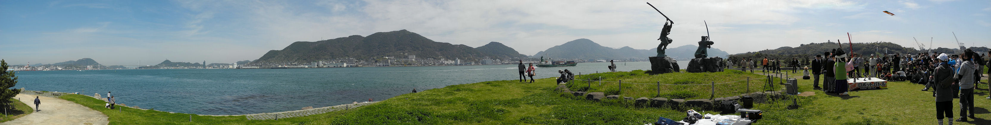 2012年4月15日 関門海峡です武蔵&小次郎像の前でロボット対決開催中