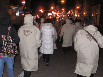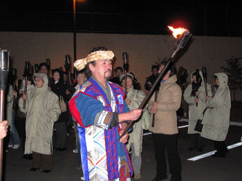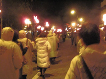 パノラマン達観光客も希望者は1000円で参加できるこの祭りに松明を持って参加しここまで歩いてきました。