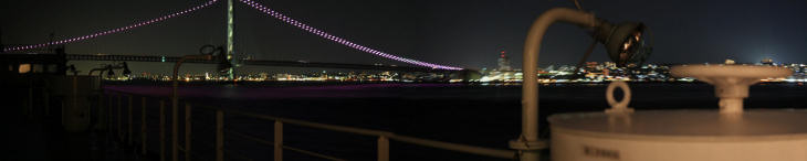 フェリーから夜の明石海峡大橋を撮影するため一眼デジカメも用意し超小型三脚で撮影しました。