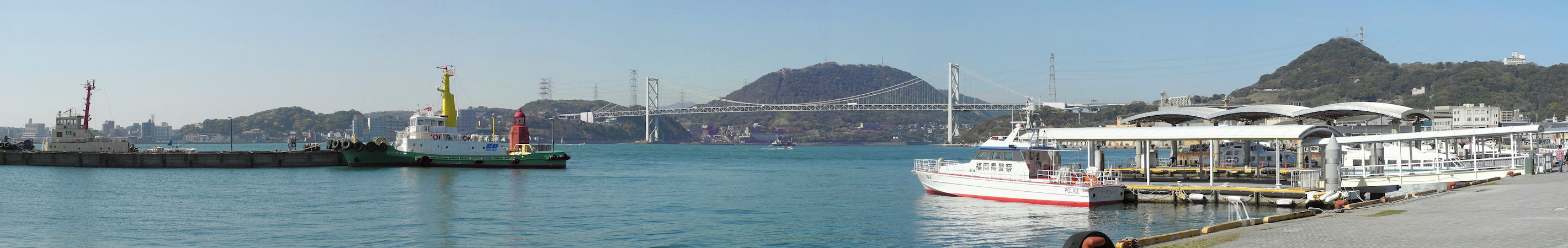 門司港から関門橋を望む